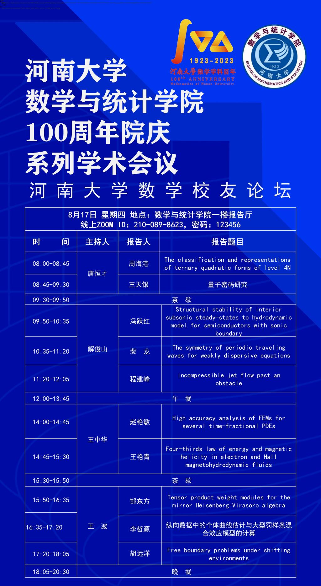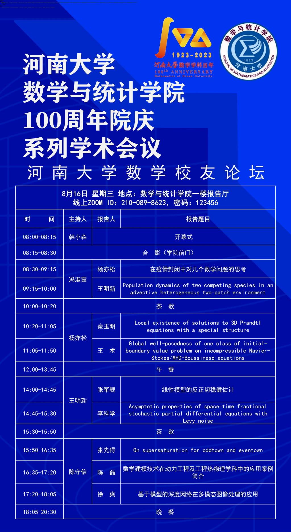 yl7703永利官网数学校友论坛(时间:8.16-17)