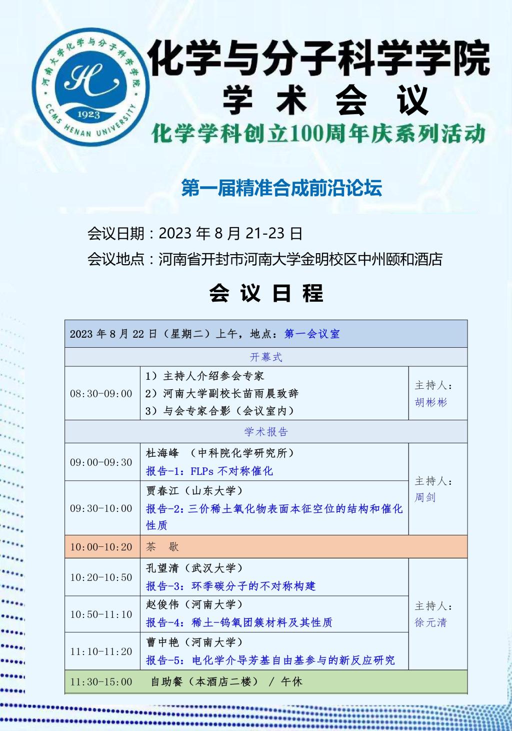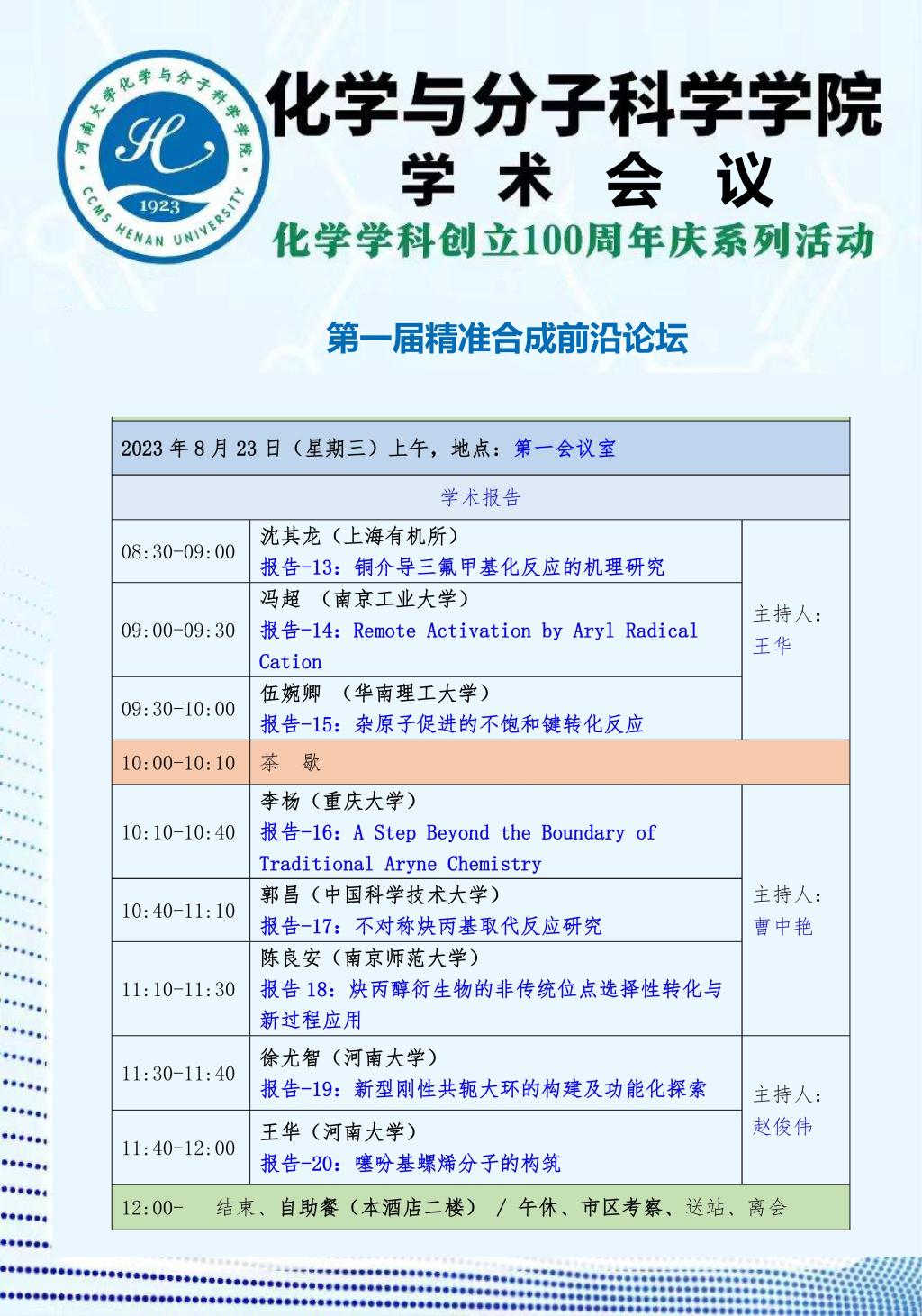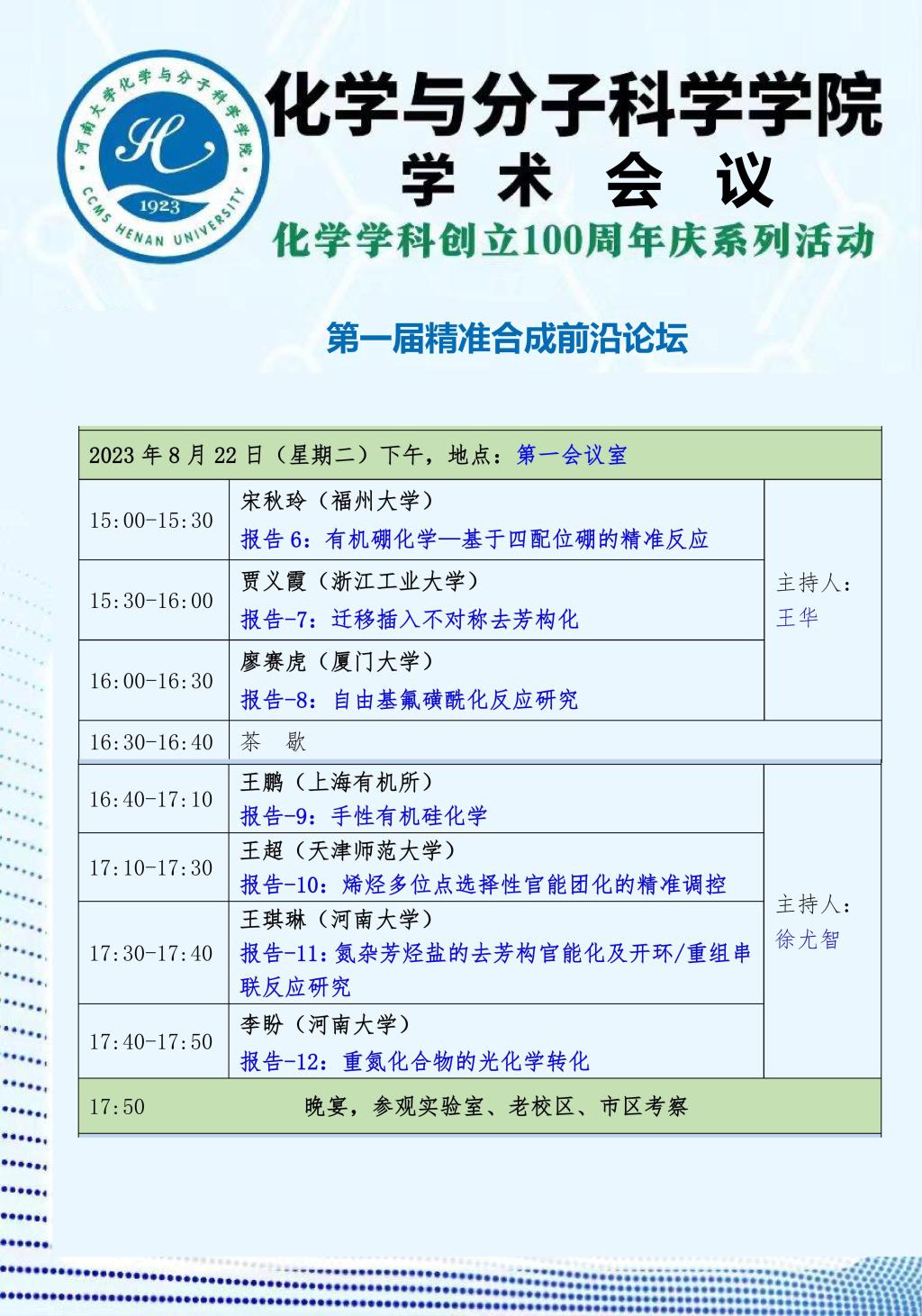 化学与分子科学学院:第一届精准合成前沿论坛(时间8.21-23)