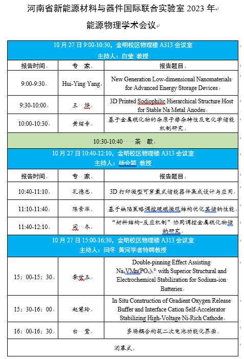 河南省新能源材料与器件国际联合实验室2023年能源物理学术沙龙(时间:10月27日)