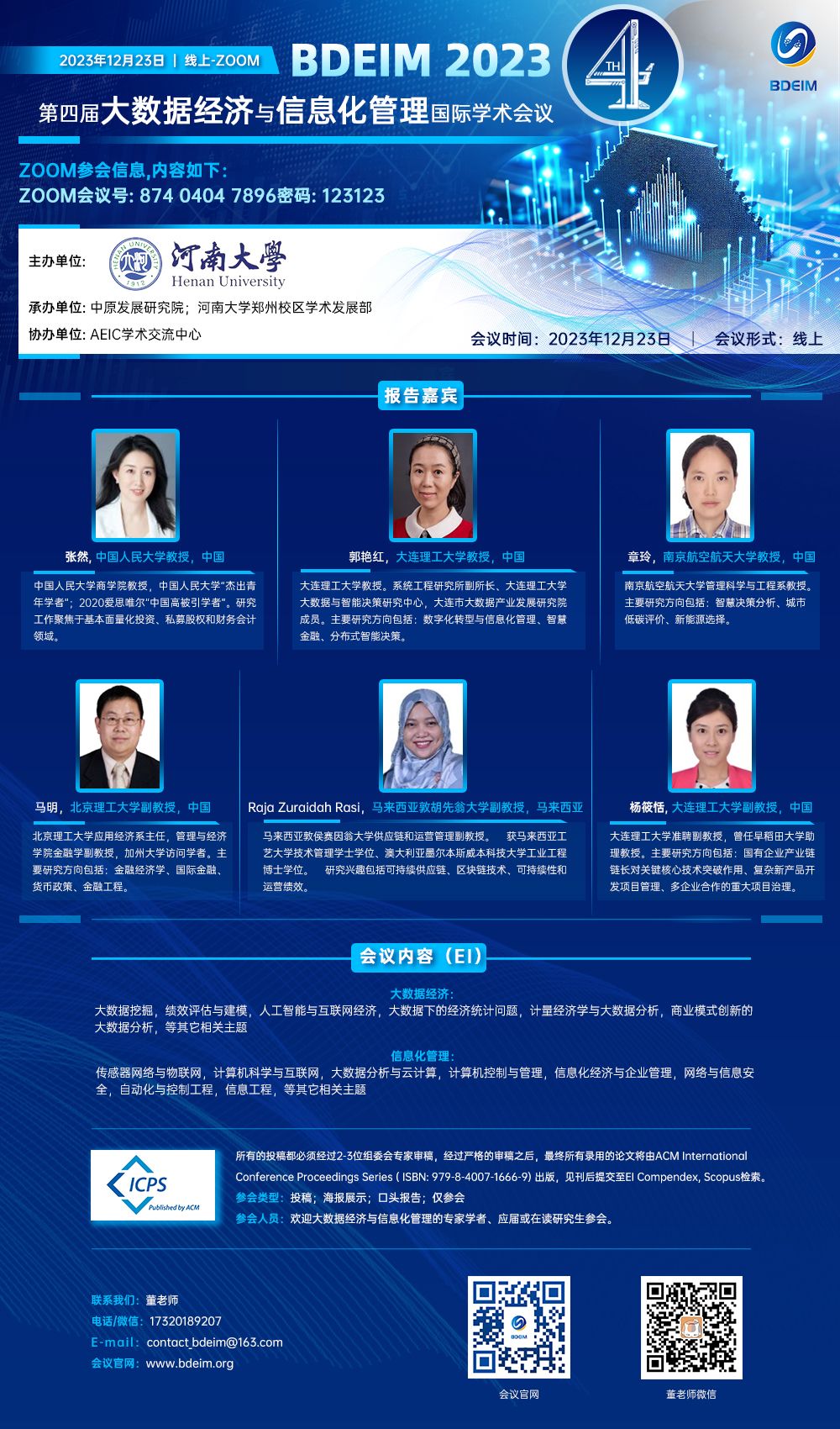 第四届大数据经济与信息化管理国际学术会议(时间:12月23日)